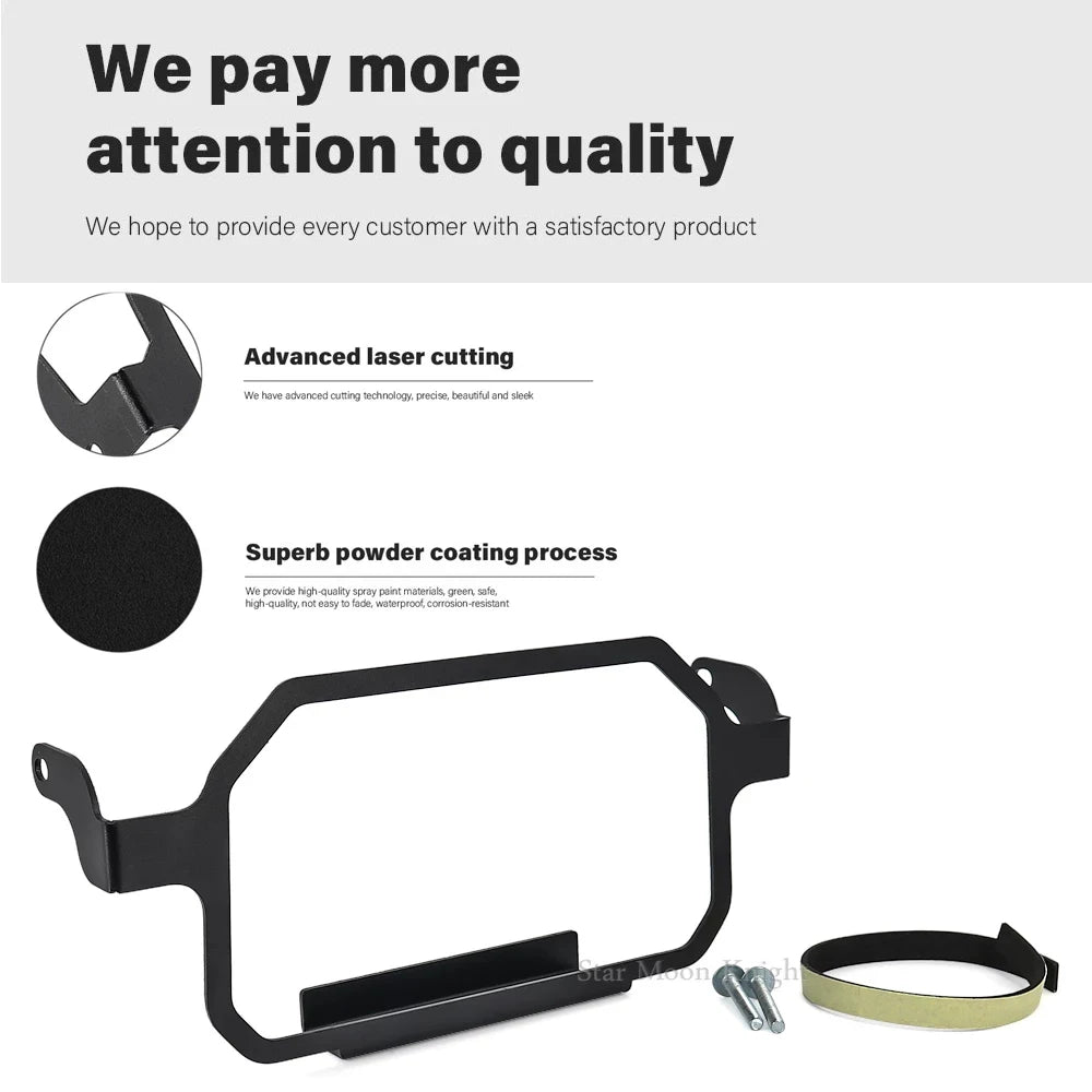 Turėdami šią apsaugą, kiekvieno važiavimo metu jaučiatės ramiai. Ji uždaro originalių trijų cirklių pažeidžiamumą ir padeda išvengti brangių sugadinimų ar jūsų centrinio informacijos centro praradimo. Lengva įdiegti ir specialiai sukurta F850GS Adventure, ji puikiai tinka prietaisų zonoje, nesukeldama problemų prieigai prie valdiklių ar navigacijos stovo.