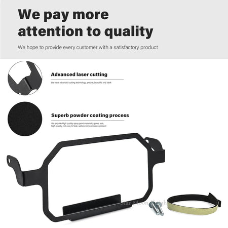 apsaugokite BMW F 850GS Adventure TFT ekraną su specializuota vagystės apsauga, kuri užtikrina, kad jūsų prietaisų skydelis būtų saugus tiek ant motociklo, tiek už jo ribų. Šis Meter Frame TFT Ekrano Apsaugos su Vagystės Apsaugos Prietaisu yra sukurtas specialiai F850GS Adventure, sustiprinant montavimą aplink ekraną, kad būtų atgrasyti vagystės bandymai, net ir ilgiau stovint. Apsauga suteikia stiprią apsaugą nuo greitų trūkimų ant korpuso, tuo pačiu leidžiant jums naudoti navigacijos įrenginio stovą be apribojimų.