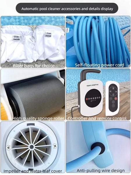 Susipažinkite su Robotų Baseino Valytuvu su 30m Kabeliu, Lipančiu Ant Sienų, Nuotoliniu Valdymu — galingas, be maišelio valymo pagalbininkas, sukurtas lengvai valyti didelius baseinus. Nuo sienos iki sienos aprėpties iki kruopštaus šiukšlių surinkimo, šis Robotų gyvenimo būdo modelis naudoja ilgą 30 metrų kabelį ir protingus valymo ciklus, kad jūsų baseinas spindėtų. Pasirinkite iš 1h, 2h arba 4h ciklų, kad atitiktų jūsų tvarkaraštį, o audinio dulkių maišelis ir didelės talpos filtras užtikrina efektyvų, mažai priežiūros reikalaujantį veikimą.