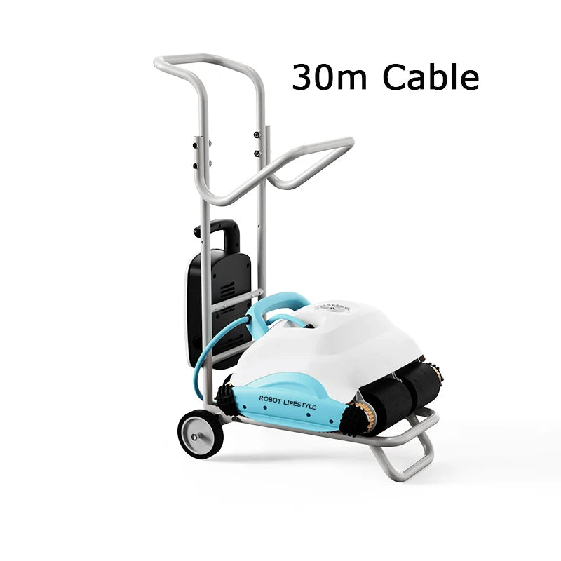 - Ilgas pasiekiamumas dideliems ar netaisyklingos formos baseinams: Platus 30m kabelis padeda jums valyti didesnę teritoriją be dažnai reikalingo perkėlimo.