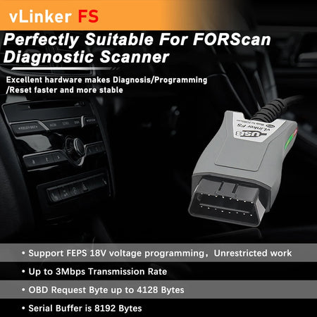 Su didelio greičio 3 Mbps komunikacijos greičiu ir dideliais duomenų buferiais (4128 OBD užklausos baitai ir 8192 baitų serijinis buferis), įrenginys pagreitina diagnostiką, programavimą ir nustatymus. Jo tvirtas ABS korpusas tamsiai pilkos spalvos atlaiko kasdienį dirbtuvėse naudojimą, o suderinamumas su „Windows“ platformomis (Windows 2000/Vista/7/8/8.1/10, 32/64-bit) užtikrina, kad galėsite sklandžiai naudoti FORScan ir susijusią programinę įrangą. Įrankis palaiko 12/24V transporto priemonių įtampą, plečiant jo naudingumą lengvoms ir sunkiosios paskirties „Ford“ programoms.