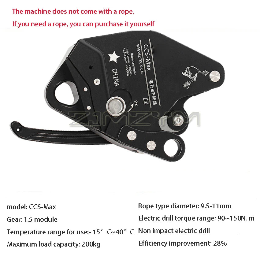 - Taikymas: Elektrinis virvės keltuvas kopimui ir nusileidimui