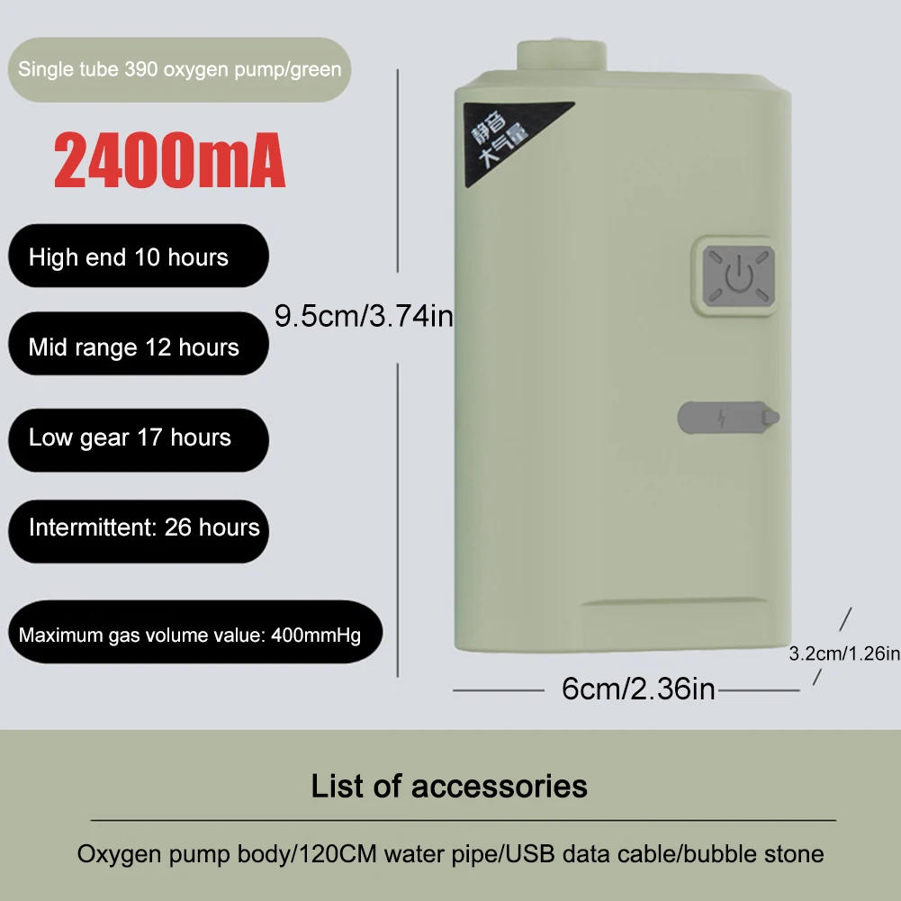 Deguonies pripildytas žuvų bako siurblys USB įkraunamas oro burbuliatorius aeratorius itin tylus deguonies/aeravimo siurblys nešiojamas lauko žvejybai — kompaktiškas, USB įkraunamas oro burbuliatorius, sukurtas palaikyti gyvą masalą ir mažus akvariumus deguonies, su itin tyliu veikimu ir nešiojamu patogumu lauko žvejybai ir namų naudojimui.