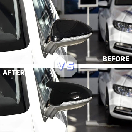 Ryškūs juodi veidrodžių dangteliai su signalais VW Golf GTI ir Touran siūlo momentinį išorės atnaujinimą su drąsiu ryškiai juodu apdailos paviršiumi ir integruotais signalų indikatoriais. Sukurti phirikes, šie veidrodžių dangteliai suteikia šiuolaikišką išvaizdą, tuo pačiu pagerindami matomumą kelyje.