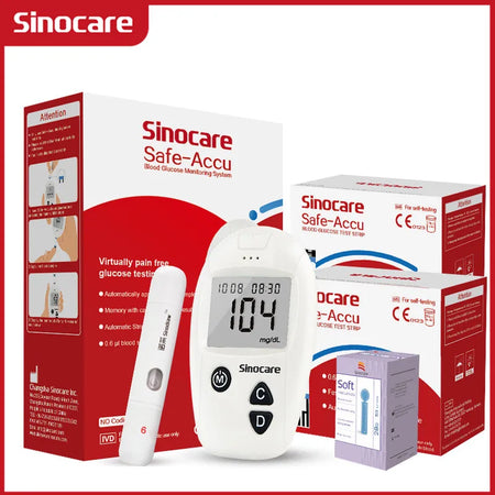 Sinocare SafeAccu kraujo gliukozės matuoklio rinkinys juostelėms lancetams yra patikima, lengvai naudojama kraujo gliukozės stebėjimo sistema iš SINOCARE (Kinija), skirta namų ir kelionėms. Ji pateikia greitus rezultatus per 10 sekundžių iš mažo 0,6 μL kraujo mėginio, su matavimo diapazonu nuo 20-600 mg/dL (1.1-33.3 mmol/L). Prietaisas priima šviežią periferinį visą kraują arba veninį visą kraują testavimui ir naudoja veninį plazmą kalibravimui. Jis saugo iki 200 testavimo rezultatų, kad padėtų jums stebėti tendencijas laikui bėgant. Pastaba: baterijos nėra įtrauktos - šiam rinkiniui reikalinga CR2032 elementas. Prašome atkreipti dėmesį į pakuotės skirtumus ir pasirinkti, kas jums labiausiai tinka.