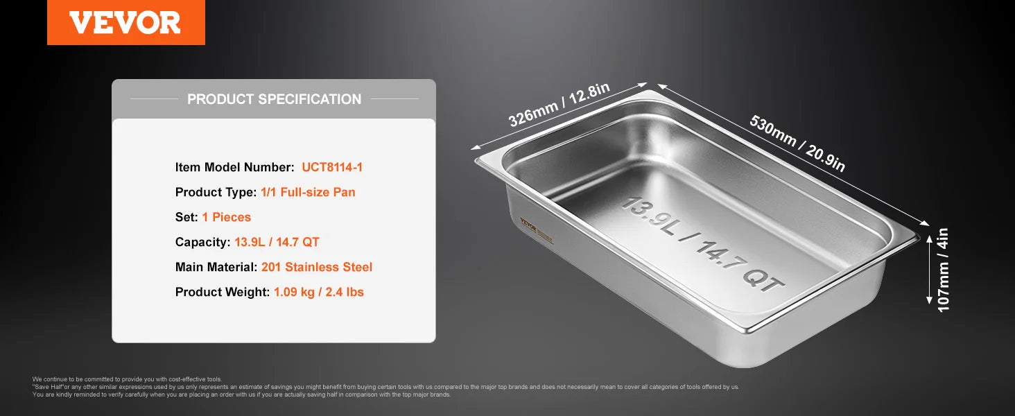 Susipažinkite su FourInch Nerūdijančio Plieno Gastronorm Garų Panais—patvarūs, higieniški ir universalūs, šie pilno dydžio, 4 colių gylio puodai yra idealūs maisto gaminimui, saugojimui ir pateikimui. Pagaminti iš maisto klasės 201 nerūdijančio plieno, jie atlaiko aukštas temperatūras ir šaldymą, todėl puikiai tinka orkaitėms, garų stalo šildytuvams, šaldytuvams ir šaldikliams, padėdami jums optimizuoti aptarnavimą ir sumažinti atliekas.