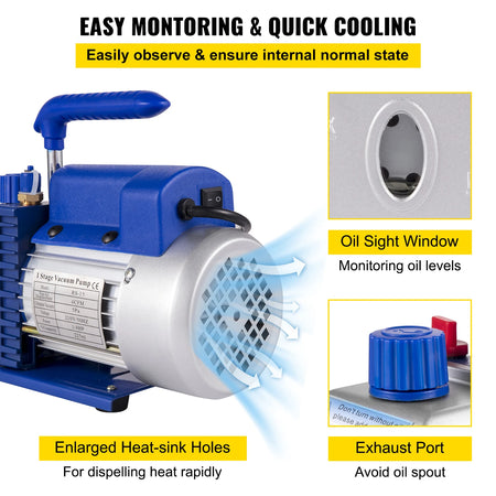 Šis siurblys supaprastina evakuacijos užduotis, teikdamas nuolatinį oro srautą, greitą nusileidimą iki 5 Pa ir patvarią konstrukciją, kuri sumažina prastovas. Jo kompaktiškas, mažai vibracijos dizainas pagerina vartotojo komfortą ir tikslumą, kai aptarnaujami šaldymo sistemos, atliekamos laboratorinės evakuacijos ar vykdomi DIY HVAC projektai.