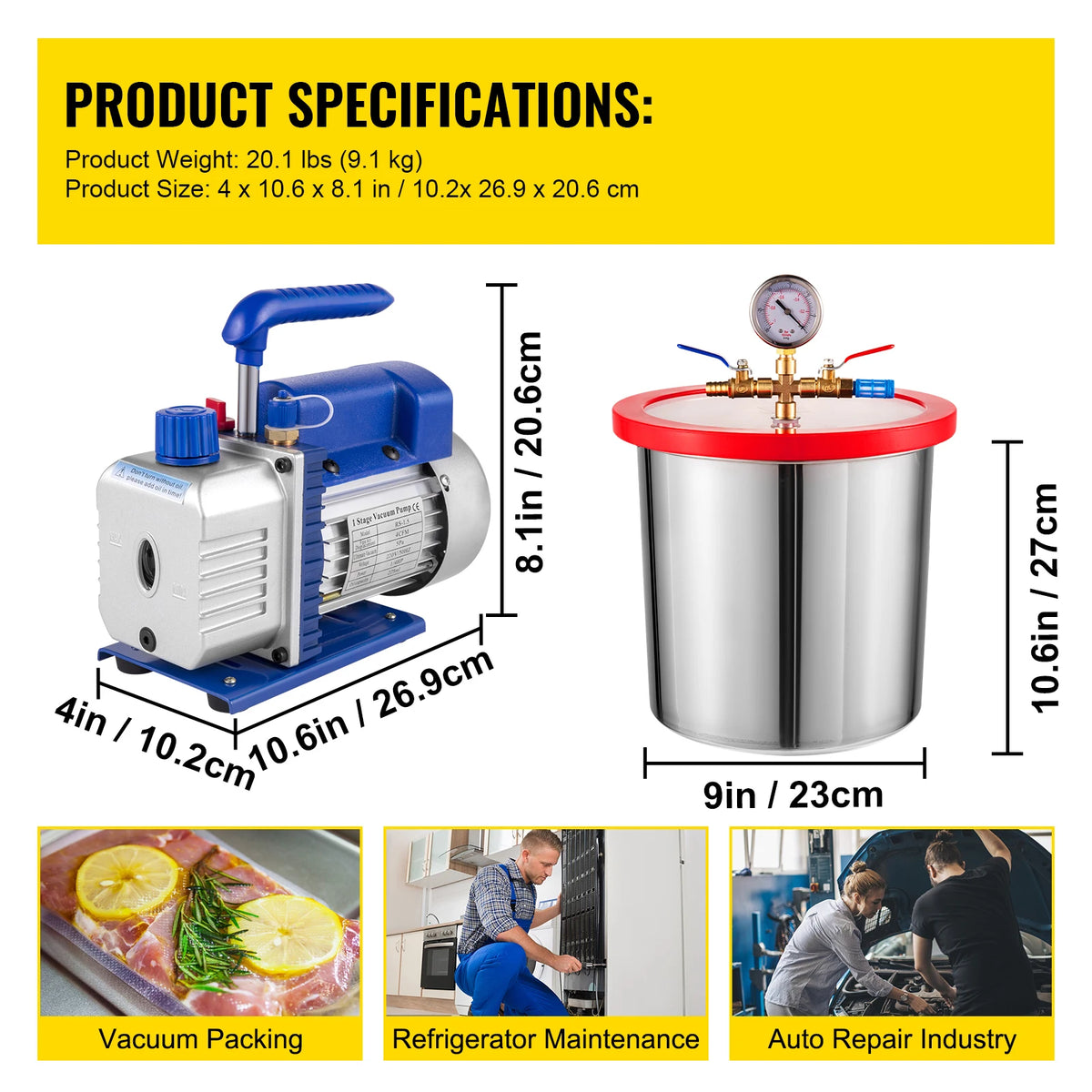 Tinkamas HVAC technikams, šaldymo paslaugoms, laboratorijoms ir rimtiems pomėgiams – remiamas patikimo našumo ir 2 metų garantijos. Pridėkite šį aukšto efektyvumo vakuuminį siurblio rinkinį prie savo įrankių rinkinio šiandien, kad pagreitintumėte evakuacijas ir užtikrintumėte tikslius, ilgalaikius rezultatus.