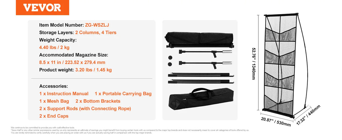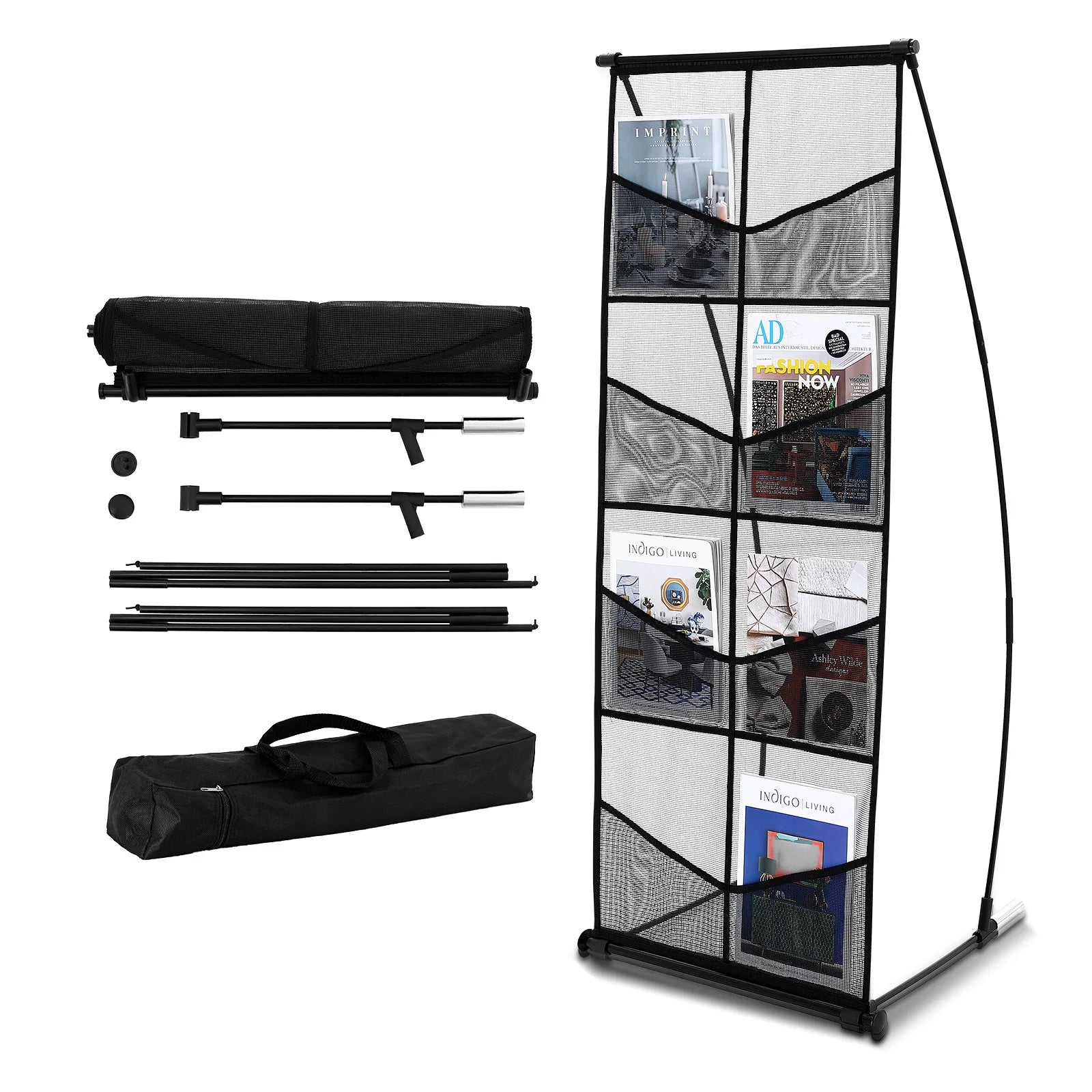 - Laikykite medžiagas organizuotas ir labai matomas: 8 kišenės per 2 tinklo eiles suteikia tvarkingą, prieinamą demonstraciją brošiūroms, žurnalams ir skrajutėms.