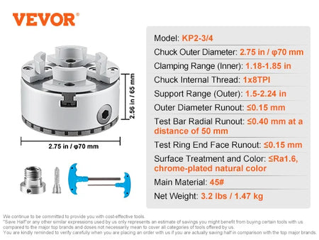 Jo kompaktiškas, tvirtas dizainas sujungia paprastą montavimą su patikimu našumu. Keturių žandikaulių, savisukančio lathe chuck išdėstymas garantuoja subalansuotą sukibimą tiek su apvaliais, tiek su netaisyklingais elementais, padėdamas jums pasiekti tikrą nuokrypį ir švarius paviršius. Tikslus apdirbimas užtikrina tikslius tolerancijas ir stabilų veikimą apdirbant, šlifuojant ir gręžiant. Tai daro jį universaliu atnaujinimu tiek mėgėjams, tiek profesionalams.