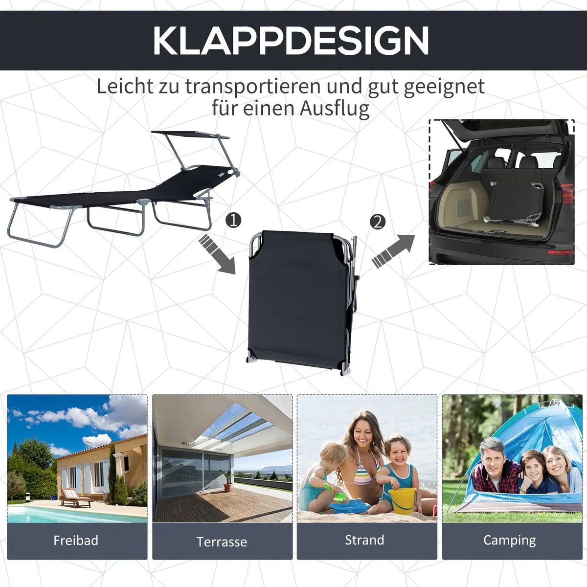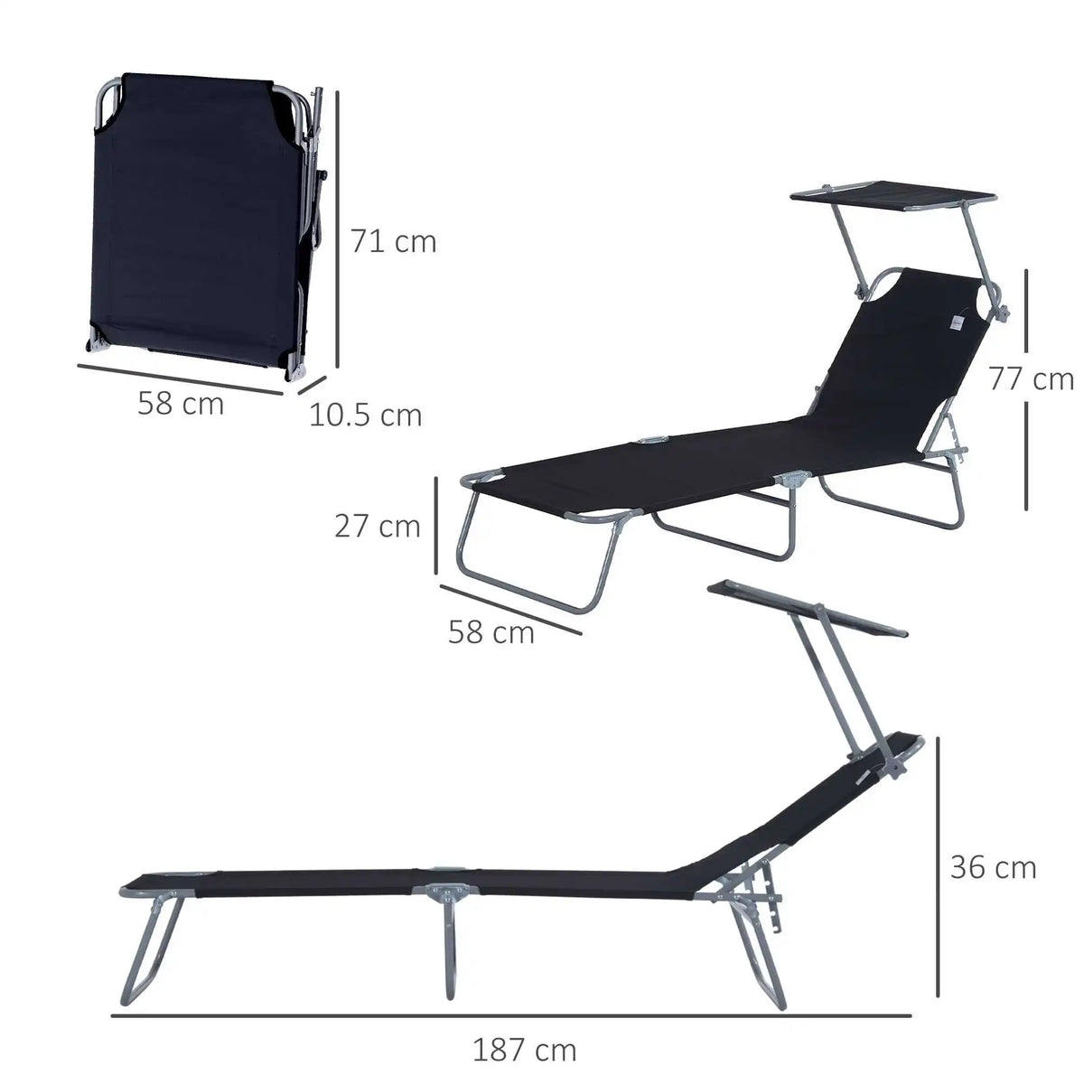 Sulankstoma saulės gultas su stogu juodas 187x58x36 metalas