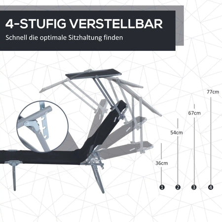 Poilsiaukite stilingai su Sulankstomu Saulės Gultu Su Skėčiu Juodos Spalvos. Šis universalus lauko krėslas puikiai tinka poilsiui jūsų sode, terasoje, prie baseino ar paplūdimyje. Reguliuojamas saulės skėtis leidžia jums kontroliuoti šešėlį, kai saulė juda, todėl galite likti vėsūs ir patogūs visą dieną.