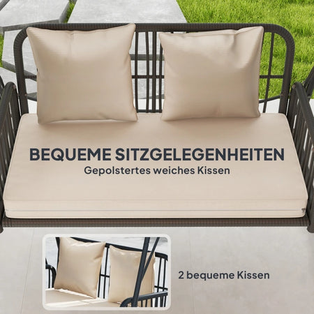 Khaki Rattan Two Seater Garden Swing With Adjustable Canopy is the perfect outdoor retreat for two. Designed for comfort and built to last, this stylish garden swing combines a soft seating experience with practical, all-weather protection. The retractable canopy provides shade on sunny days and light rain coverage, so you can unwind outside without interruptions.