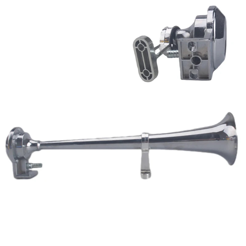 Patirkite drąsų, didelio poveikio signalą su Universal 17 colių vieno trimitų automobiliniu oro ragų. Su 12V kompresoriumi jis skleidžia galingą 150.2 dB traukinio ragų toną, nesiremdamas išoriniu oro rezervuaru. Chromu padengti cinko trimitu atsparūs rūdijimui, o kompaktiška 17.7 colių ilgio konstrukcija leidžia jį montuoti siauriose variklio erdvėse, sunkvežimiuose, laivuose ar standartiniuose automobiliuose. Šis vieno trimitų ragas sukurtas lengvam montavimui, teikiant garsų, aiškų įspėjimą, kai to labiausiai reikia.
