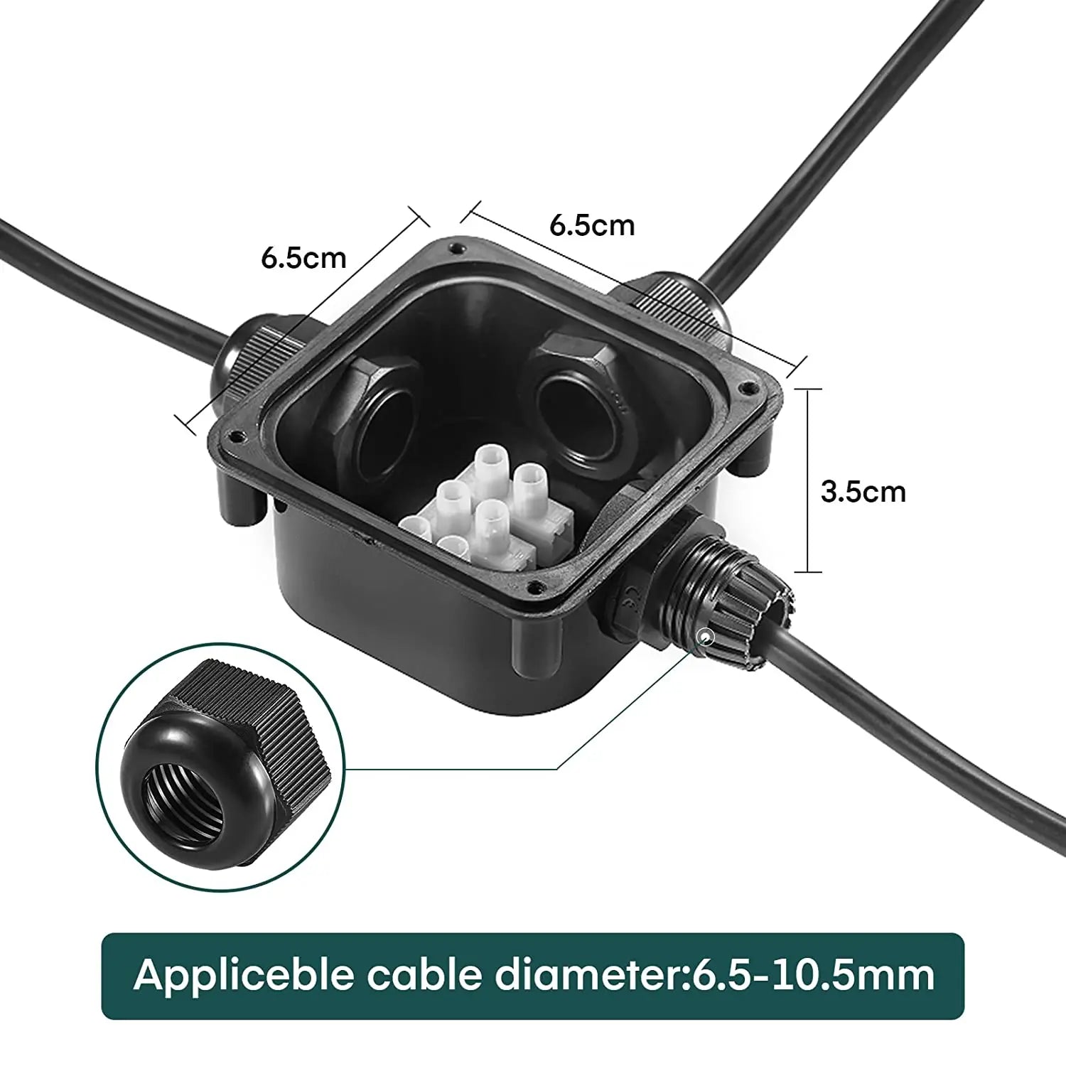 IP68 Atsparus Vandeniui 3 Būdų Išorinis Elektros Jungčių Dėžutė Juoda