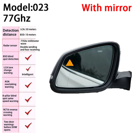 The system is specifically designed for the BMW 3 Series lineup from 2012 to 2019 (F30 F31 F34 F35) and offers flexible integration options. If you send your original mirrors to our factory, engineers can customize the laser warning light pattern to match your vehicle’s mirrors at the same price. Two mainstream integration styles are available: a lens display with the prompt light on the lens, or an in-car display showing warnings on the triangular window inside the cabin.