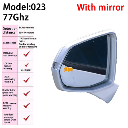 Patobulinkite savo Chevrolet Trailblazer saugumą su Chevrolet Trailblazer Aklojo taško radarų įspėjimo sistema iš ZJCG. Ši pažangi aklojo taško pagalbos sistema stebi užpakalinės pusės veiklą su dviem mmWave radarais, sumontuotais ant galinio buferio, aptikdama judančius objektus užpakalinėje įspėjimo zonoje. Su įspėjimo atstumu, kuris gali siekti iki 700 metrų, sistema aktyvuojasi, kai objektai patenka į jutiklio zoną, padėdama jums išvengti juostos keitimo konfliktų ir galimų susidūrimų. Pasirinkite iš dviejų integracijos stilių: objektyvo ekrano pranešimas ant objektyvo arba automobilio ekrane rodomi įspėjimai ant trikampio lango kabinoje. Norėdami gauti pritaikytą išvaizdą, galite siųsti savo originalius veidrodžius į mūsų gamyklą, kad gautumėte individualizuotą lazerinį įspėjimo šviesos modelį, išlaikydami tą pačią kainą (jūs apmokate siuntimą ir bet kokius taikomus importo mokesčius).