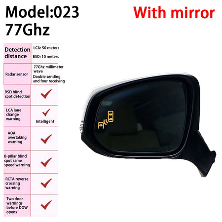 Ši BSD sistema, sukurta specialiai Toyota Alphard Vellfire AH30 modeliams nuo 2015 iki 2023 metų, prisitaiko prie jūsų transporto priemonės, kad suteiktų tikslius ir patikimus įspėjimus. Jei atsiųsite mums savo originalų vidinį galinio vaizdo veidrodį, mūsų inžinieriai gali pritaikyti lazerinio įspėjimo šviesos modelį, kad jis atitiktų jūsų veidrodžius, o kaina liks nepakitusi. Ši galimybė leidžia integracijai jaustis sklandžiai ir pritaikytai jūsų automobilio estetikai.