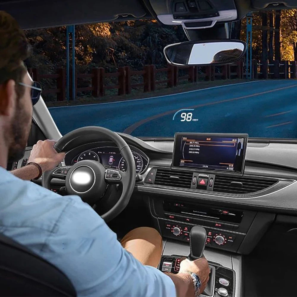 Pagerinkite vairavimo saugumą su Automobilių HUD (Head Up Display) greičio matuoklio projektoriumi, sukurtu Audi A6 S6 RS6 C7 4G modeliams nuo 2012 iki 2018 metų. Šis kompaktiškas 5 colių, laidinis įrenginys projekuoja svarbią informaciją apie transporto priemonę tiesiai ant jūsų priekinio stiklo, todėl jūsų akys lieka kelyje, kol greitį ir kitus duomenis galite stebėti akies krašteliu. Atspindėdamas automobilio duomenis ant stiklo, jis sumažina poreikį žiūrėti žemyn į prietaisų skydelį, padėdamas jums išlikti susikaupus per greitą vairavimą ir naktinėmis sąlygomis.
