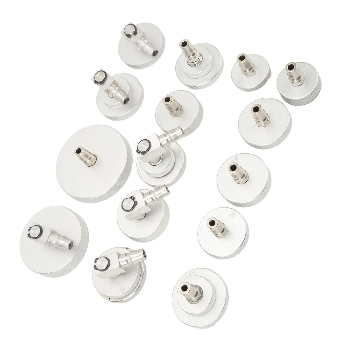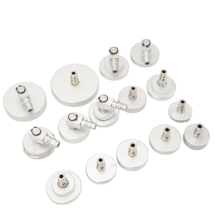 15Pcs Master Cylinder Adapter Set ir necaurlaidīgs bremžu šķidruma izsūknēšanas komplekts, kas paredzēts plaša automobiļu klāsta apkalpošanai. Šis daudzpusīgais komplekts ietver 15 adapterus dažādos izmēros, lai derētu Vācijas, Japānas, Korejas un Eiropas modeļiem, nodrošinot drošu blīvējumu un tīru, necaurlaidīgu izsūknēšanas procesu katru reizi.