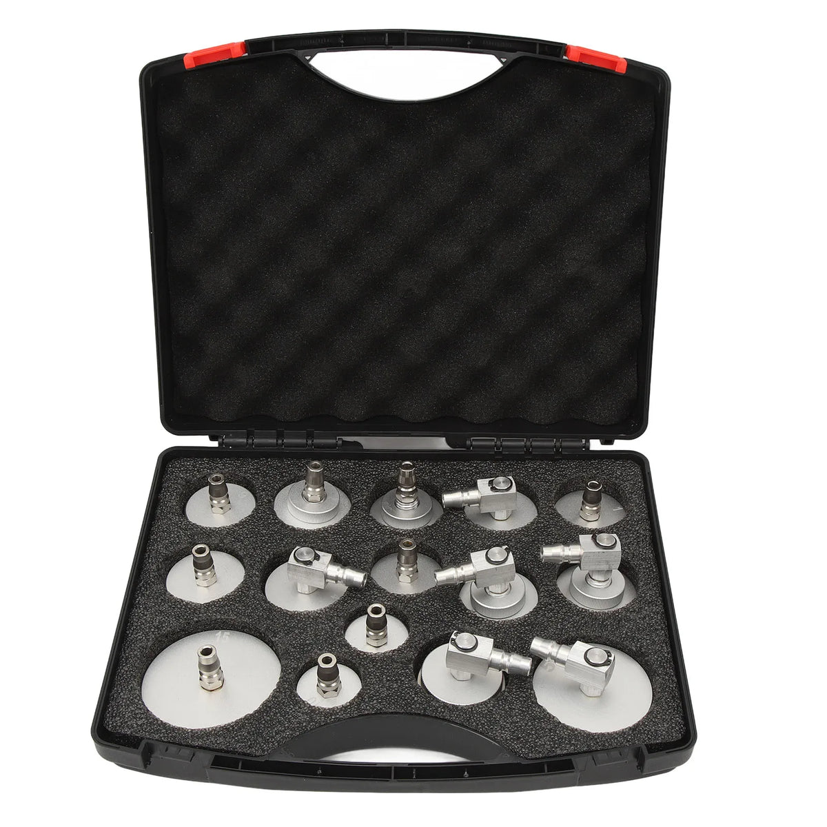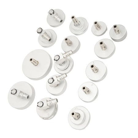 Izgatavoti no augstas stiprības alumīnija sakausējuma ar anodisku oksidāciju, šie izsūknēšanas adapteri ir izturīgi pret rūsu un iztur atkārtotu lietošanu. Viss ērti iepakots kompakta uzglabāšanas kastē, tāpēc jūs varat ņemt 15 adapterus uz garāžu vai uz vietas pakalpojumiem, vienlaikus aizsargājot galvenā cilindru adapteru grupu no bojājumiem un zudumiem.