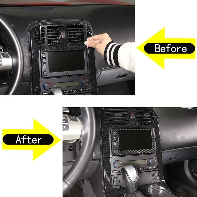 Reāls oglekļa šķiedras apdare Chevrolet Corvette C6 2005-2013 ir augstas kvalitātes iekšējā apdare, kas paredzēta, lai uzlabotu jūsu Corvette kabīni. Izgatavota no reālas oglekļa šķiedras, šī apdare nodrošina elegantu, sacīkšu iedvesmotu izskatu, vienlaikus aizsargājot navigācijas ekrāna rāmi un apkārtējās virsmas no ikdienas nodiluma. Tā precīzi der Chevrolet Corvette C6 modeļiem no 2005. līdz 2013. gadam, piedāvājot izsmalcinātu uzlabojumu bez invazīvām izmaiņām.