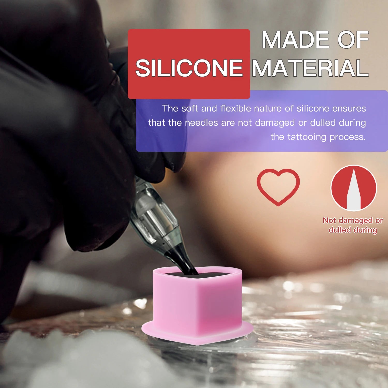 Atklājiet 200Pcs Sirds formas vienreizlietojamo silikona tetovējumu pigmenta krūzi no JC TATTOO—higiēniska, efektīva risinājuma profesionālām tetovējumu studijām un mājas uzstādījumiem. Šīs vienreizlietojamās pigmenta krūzes ir izgatavotas no silikona gēla, lai nodrošinātu izturību un elastību, un to burvīgā sirds forma palīdz precīzi kontrolēt pigmenta plūsmu. Ideāli piemērotas pigmenta sajaukšanai, ēnošanai un ikdienas krāsu darbam, tās samazina krustenisko piesārņojumu un paātrina jūsu sesijas. Katrs iepakojums ietver 200 krūzes, nodrošinot, ka jūs esat apgādāts caur atsevišķiem klientiem. Nav bīstamu ķīmisku vielu un nav nepieciešamas baterijas, padarot šo drošu, praktisku papildinājumu jūsu tetovējumu piederumiem. Izgatavots Kontinentālajā Ķīnā no JC TATTOO, šis piederums ir izstrādāts, lai optimizētu jūsu tehniku un saglabātu jūsu darba vietu kārtīgu.