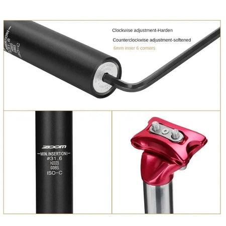 Zoom piekares sēdeklis caurule kalnu velosipēdam, alumīnija sakausējuma sēdeklis stienis