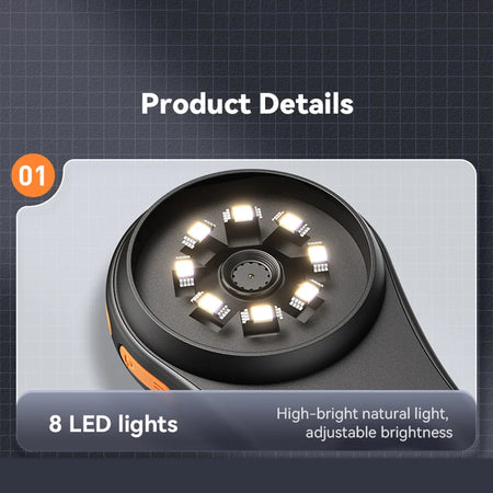- Stabilizējiet ierīci un ieslēdziet 8 LED gaismas skaidriem rādījumiem vājā apgaismojumā; ideāli piemērots cilvēkiem ar zemu redzi.