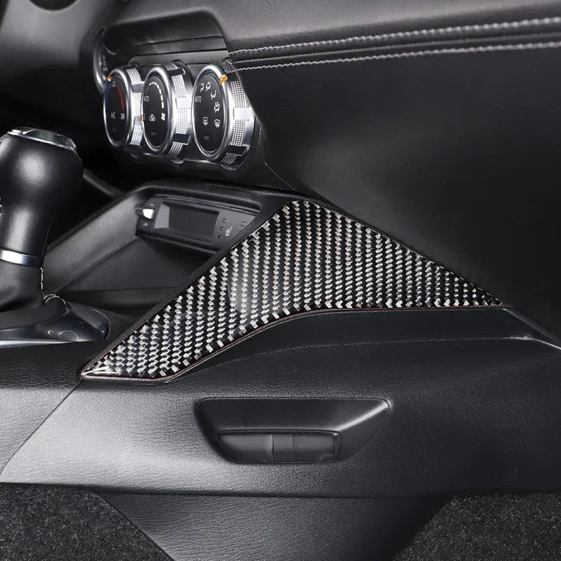 Uzlabojiet savu Mazda MX-5 interjeru ar šo 2Pcs Mīksto Oglekļa Šķiedras Konsoles Apdari. Izstrādāts Mazda MX-5 modeļiem no 2016. līdz 2025. gadam un vēlāk, šie mīkstie oglekļa šķiedras dekoratīvie pārklājumi piešķir augstvērtīgu, sportisku izskatu jūsu centrālajai pārnesumu kārbu un A/C sānu zonām, vienlaikus aizsargājot virsmas no skrāpējumiem. Elastīgais, vieglais materiāls nevainojami saplūst ar kabīni, un intuitīvā divpusējā līmlente nodrošina tīru, bezinstrumentu uzstādīšanu.
