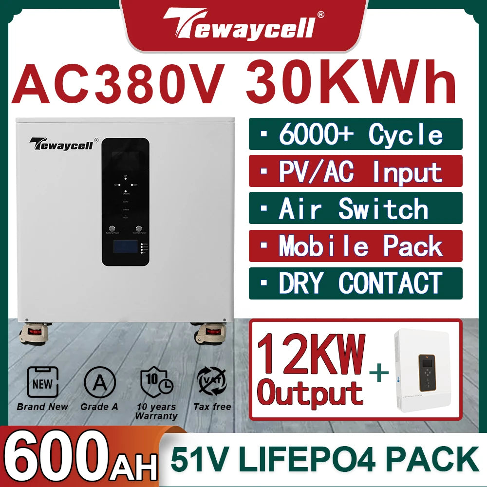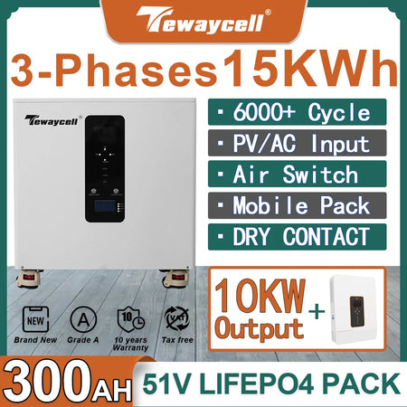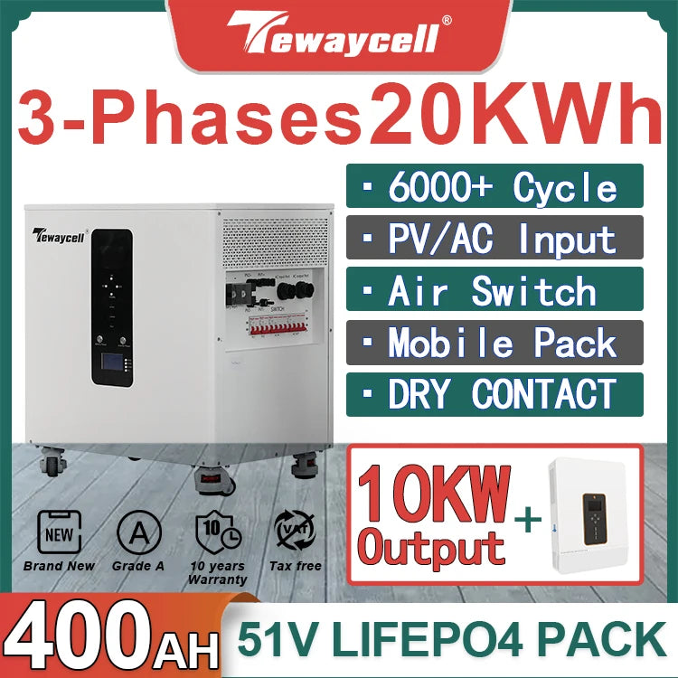 3-Phase 48V LiFePO4 All-In-One Powerwall ESS ar iebūvētu 10kW invertoru, 20kWh, WiFi monitors