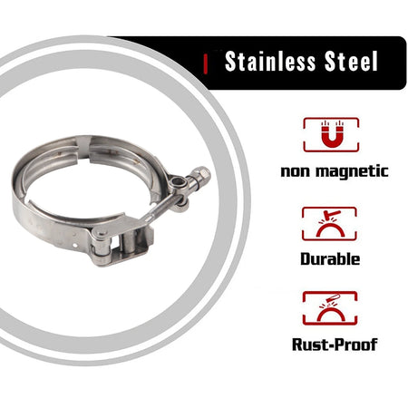 - 1 x 304 nerūsējošā tērauda ātrās atbrīvošanas V formas skava (2.5-3.5 collas) turbo izplūdei