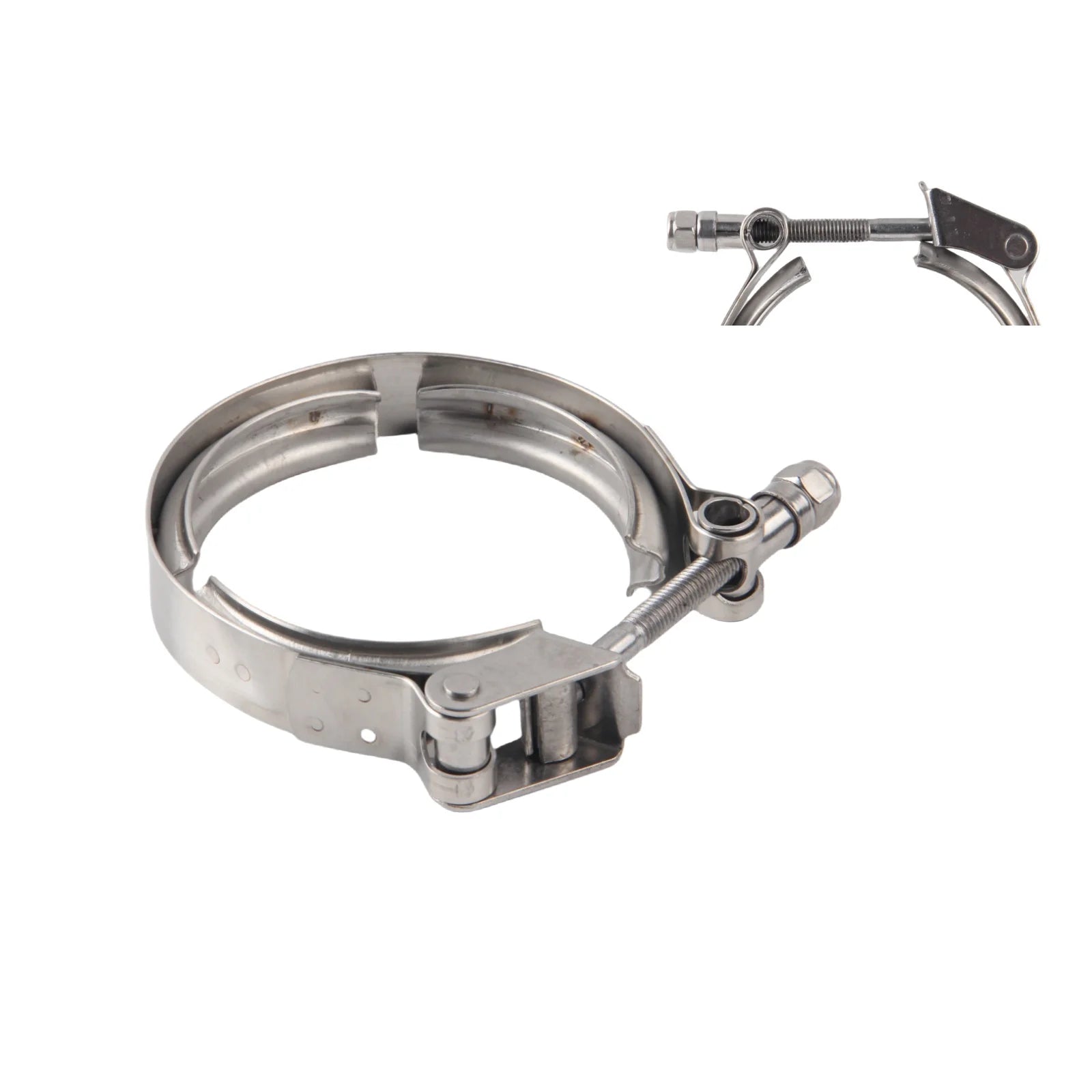 - Drošs, noplūdes pierādīts blīvējums: V formas skava vienmērīgi sadala saspiešanas spēku ap flanges, lai samazinātu izplūdes noplūdes augstā temperatūrā un spiedienā.