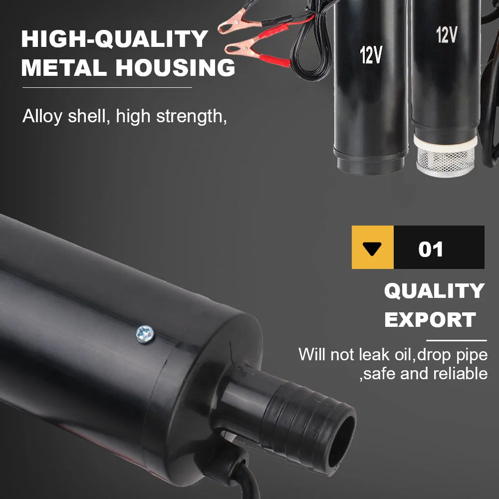Iepriekš iepazīstieties ar 12V melno elektrisko eļļas sūkni, kompakto, portatīvo iegremdējamo sūkni, kas izgatavots ar izturīgu alumīnija sakausējuma apvalku prasīgām degvielas uzpildes un šķidrumu pārvietošanas uzdevumiem. Darbināts ar 12V DC motoru, šis sūknis nodrošina stabilu veiktspēju ar nominālo jaudu 85W un spēcīgu plūsmu 50 L/min, ātri pārvietojot dīzeļdegvielu, ūdeni vai citus neabrazīvus šķidrumus. Tā pilnībā noslēgtā, izolētā konstrukcija un nerūsējošā tērauda ārējais apvalks iztur rūsu un deformāciju, tādējādi tas paliek uzticams lauka apstākļos, efektīvi izkliedē siltumu un var izturēt āra lietošanu netālu no tvertnēm, dīķiem vai būvlaukumiem.