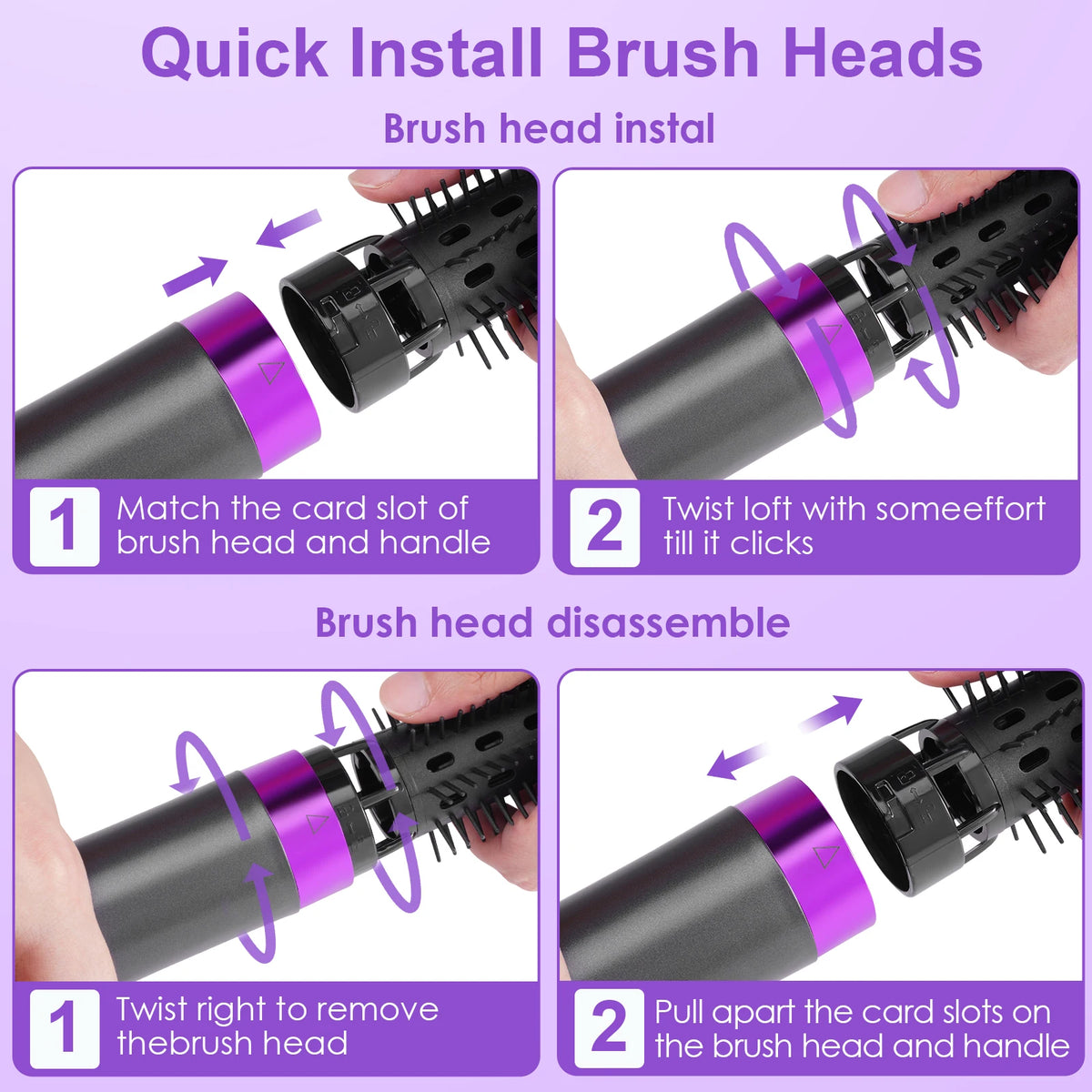 - Bez piepūles daudzpusība: mainiet starp 6 galviņām, lai žāvētu, taisnotu, cirtot un pievienotu apjomu vienā rīkā.