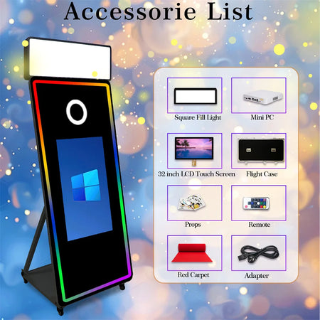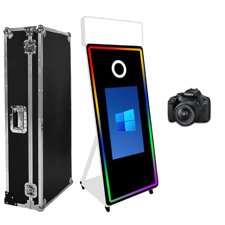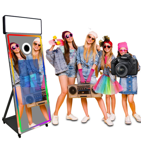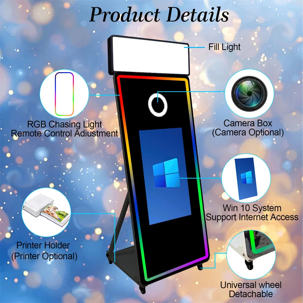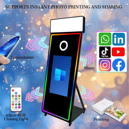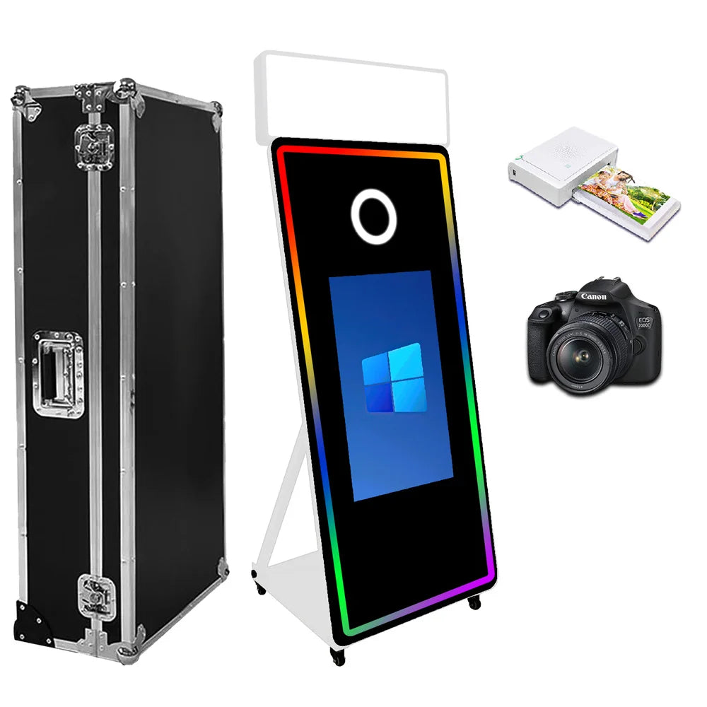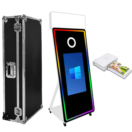 Izbaudiet neaizmirstamus mirkļus ar 65 collu burvju spoguļa foto kabīni, kas apvienota ar 32 collu skārienekrāna lidojuma kasti. Šī gatavā uzstādīšana ir ideāli piemērota kāzām, ballītēm, festivāliem, pasākumiem un nomai, piedāvājot daudzpusīgu iekštelpu un āra izklaidi. 65 collu burvju spogulis rada iespaidīgu fokusa punktu un aizraujošu interaktīvu foto pieredzi, kamēr 32 collu skārienekrāna lidojuma kaste nodrošina izturīgu, portatīvu vadības centru vienmērīgai darbībai. Izgatavots ar izturīgu metāla rāmi un stikla spoguli, tas nodrošina augstvērtīgu izskatu un ilgmūžīgu veiktspēju. Iekšpusē Intel i5 CPU ar 8GB RAM un 256GB atmiņu nodrošina ātru, uzticamu veiktspēju un ātras ielādes laikus. Papildu kamera un drukāšanas komplekts paplašina pielāgošanas iespējas, ļaujot viesiem izbaudīt digitālus attēlus vai uz vietas drukātas fotogrāfijas. Pilnībā saderīgs ar 110-240V jaudu un paredzēts vieglai transportēšanai, šī spoguļa foto kabīne nāk no Ķīnas un tiek pārdota ar WideMeet zīmolu.