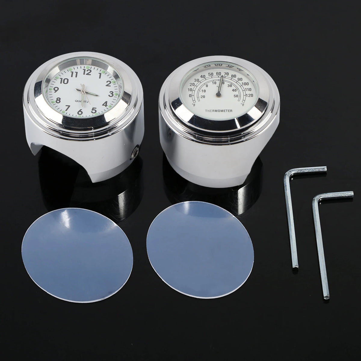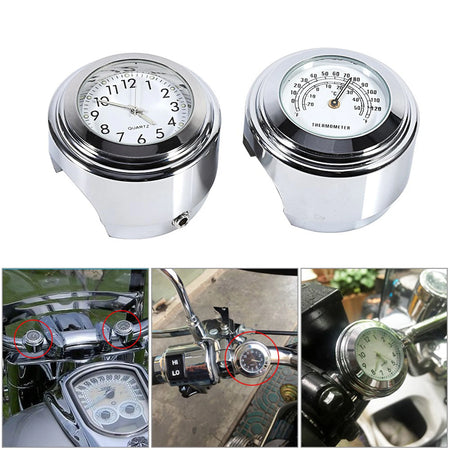 Iepriekš iepazīstieties ar praktisku divu displeju aksesuāru motocikliem: motocikla stūres stiprinājuma pulksteņa ciparnīca un termometrs ar skaidru baltu ciparnīcu. Izstrādāts, lai derētu 7/8" līdz 1" stūres, šis kompaktais modulis nodrošina laika uzskaiti un apkārtējās temperatūras rādījumus tieši tur, kur tas nepieciešams—vieglā sasniedzamībā, lai jūs varētu koncentrēties uz braucienu un laikapstākļiem.
