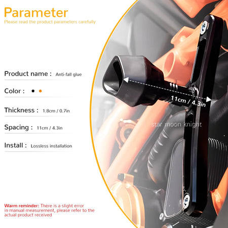 Uzlabojiet sava KTM 1390 Super Duke R vai Evo 2024 aizsardzību ar šo precīzi izstrādāto alumīnija rāmis slīdņu komplektu. Izstrādāti, lai absorbētu triecienu kritiena laikā, šie pretšoku sargi novirza enerģiju prom no motocikla rāmja, izmantojot kalibrētu atstarpi un slīdņa deformāciju. Šis gudrais dizains samazina stresu, kas tiek nodots rāmim salīdzinājumā ar standarta slīdņiem, palīdzot saglabāt motocikla struktūru neskartu, kamēr jūs braucat ar pārliecību.