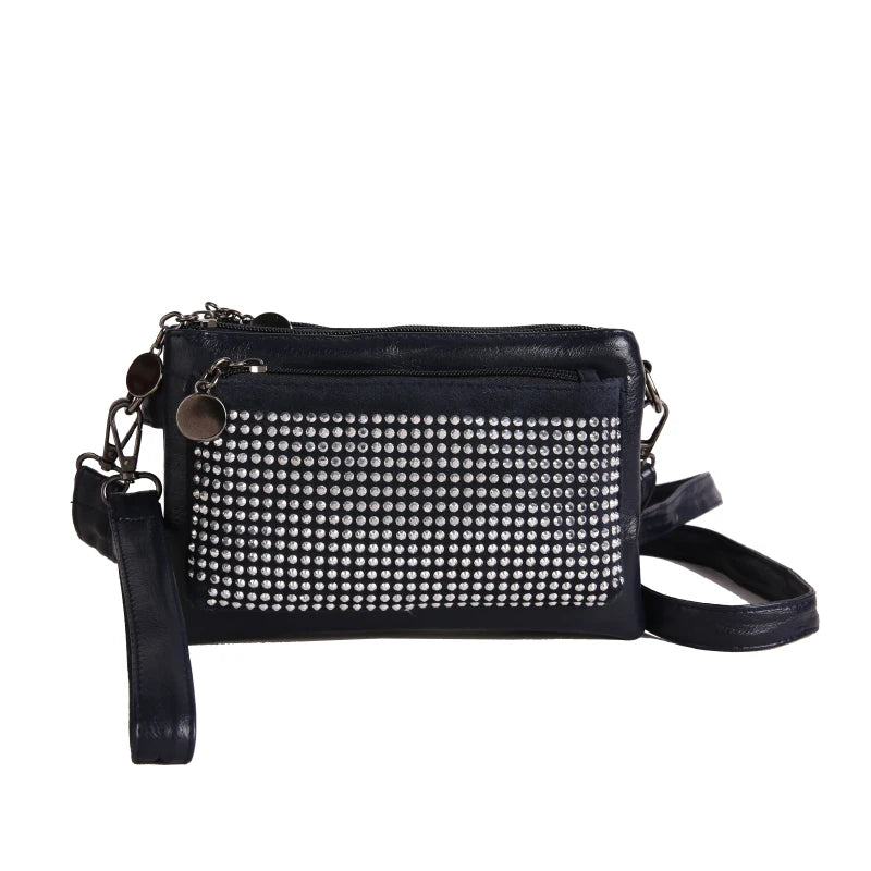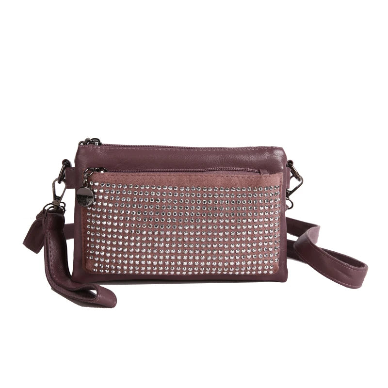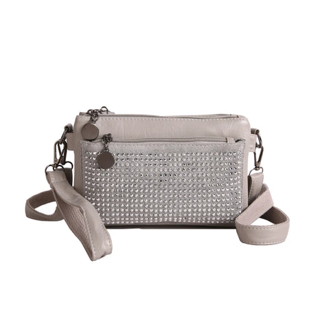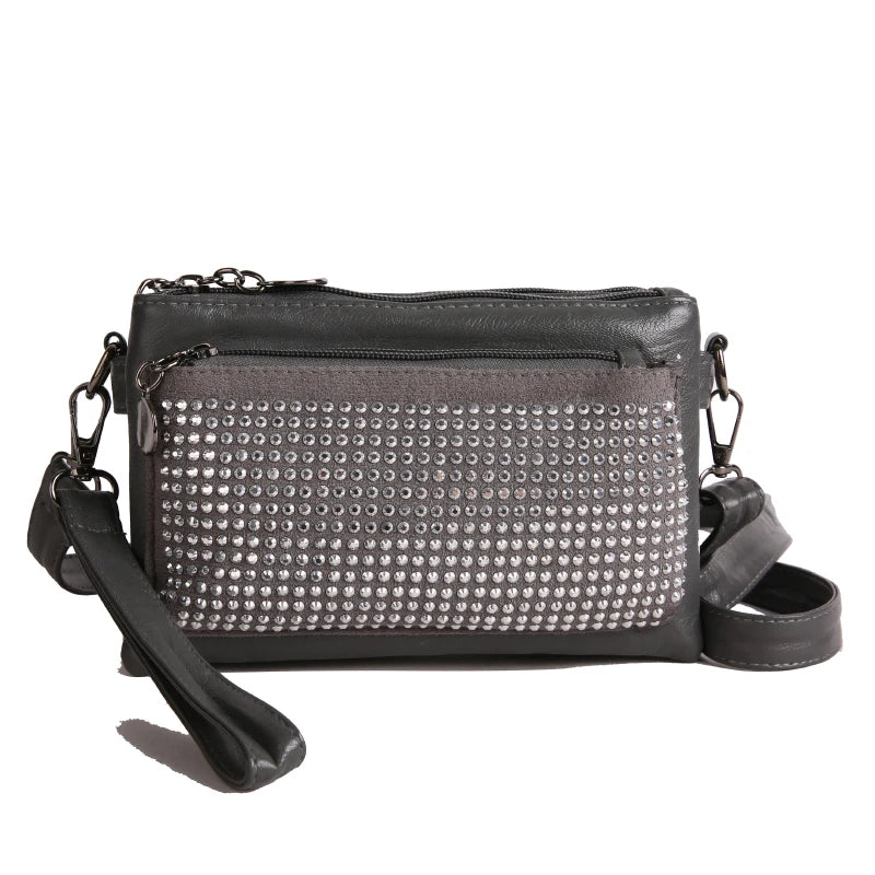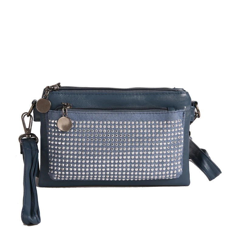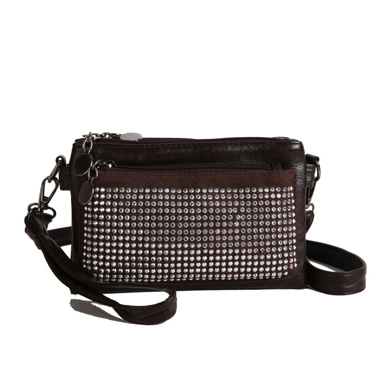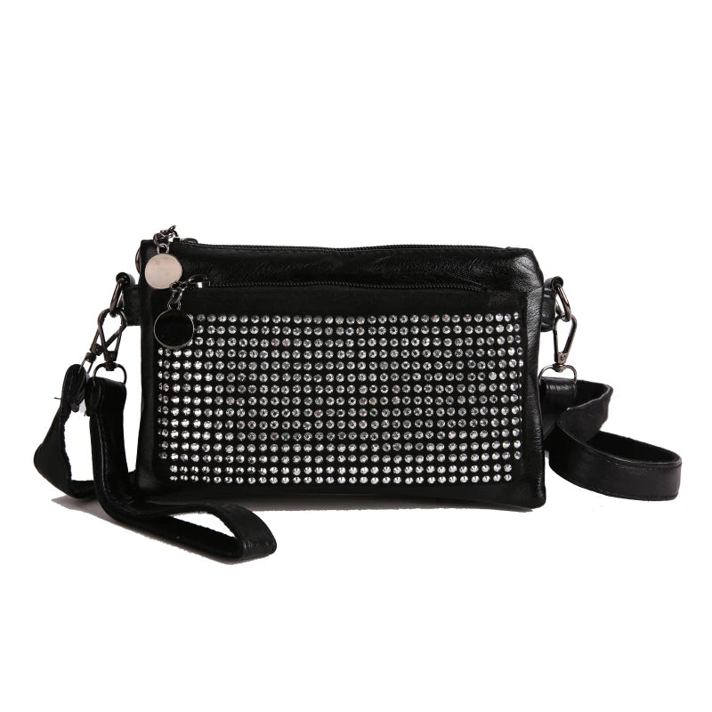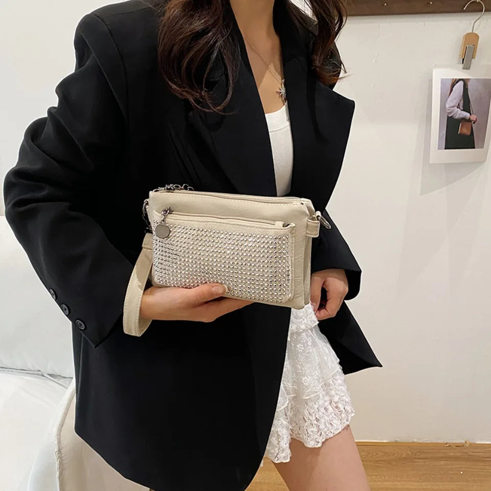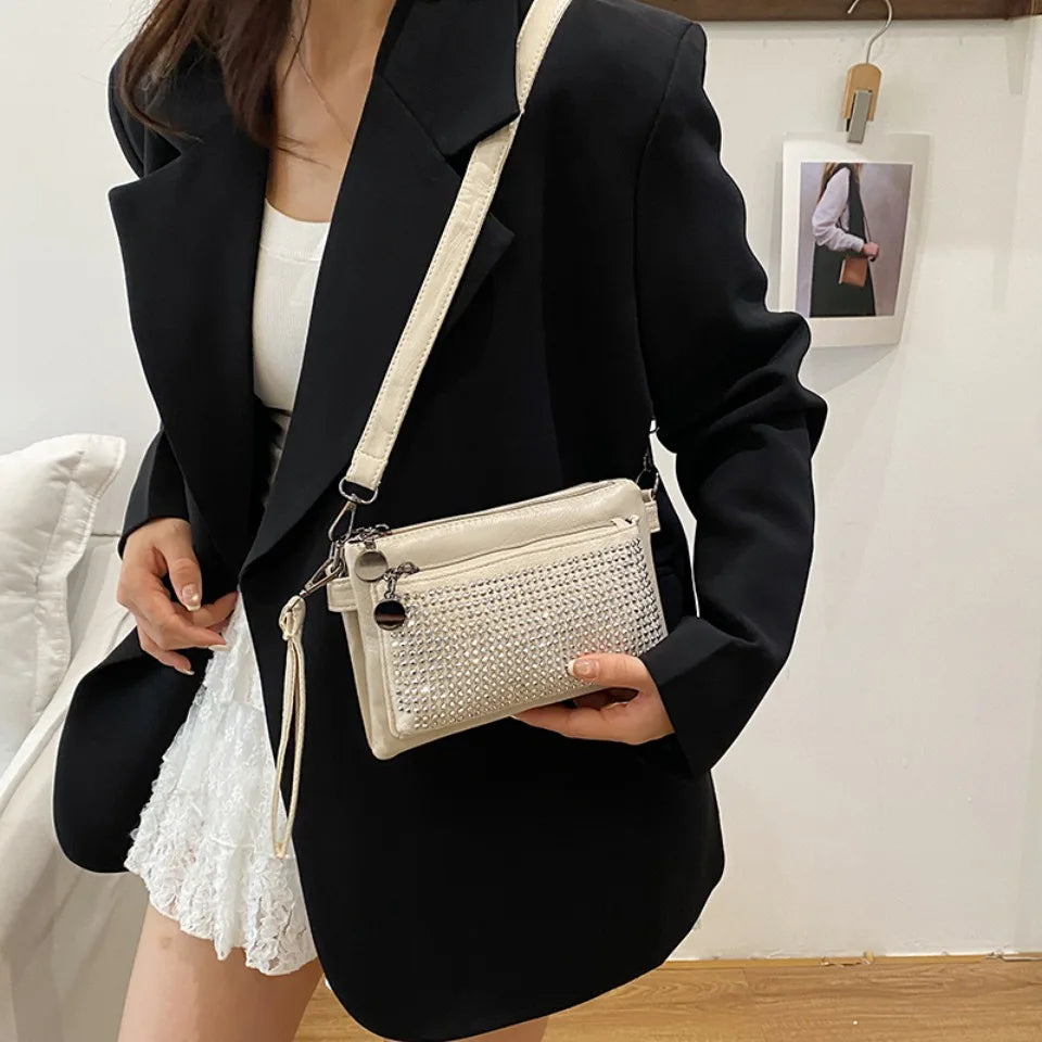 Pielāgota rhinestone trīs slāņu mīksta ādas soma sievietēm, plecu crossbody clutch