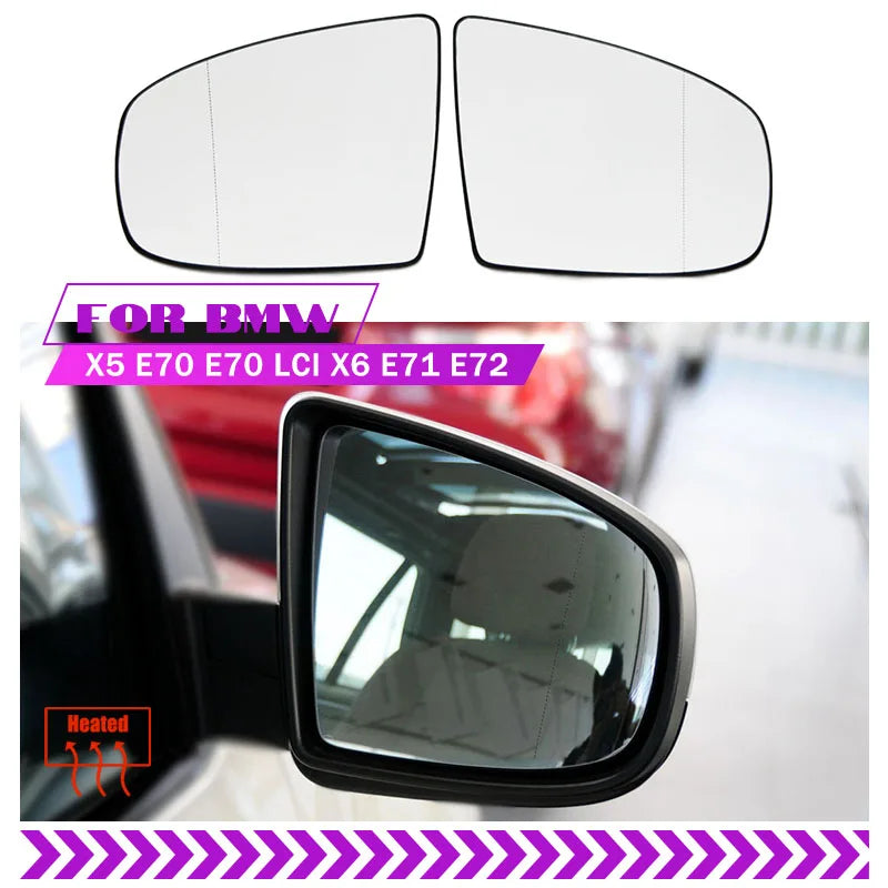 BMW X5 E70 X6 E71 E72 Apsildāmā sānu spoguļa stikls 2007 2014
