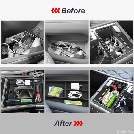 Uzturiet Kia EV9 iekšpusi kārtīgu ar Kia EV9 roku balsta uzglabāšanas kasti brillēm centrālā paneļa organizatoru. Izgatavots no augstas kvalitātes ABS, šis pielāgotais, pret slīdēšanas organizators droši atrodas roku balsta uzglabāšanas vietā, nodrošinot veltītu vietu brillēm un mazām nepieciešamībām. Tā vieglā, rūsu neizturīgā konstrukcija palīdz uzturēt klusu, bezjaucīgu kabīni—ideāli ikdienas braukšanai un ceļojumiem.