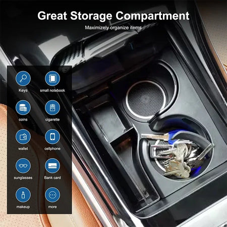 - Tur tases, monētas un mazus priekšmetus drošībā braucot, samazinot nekārtību un novēršot traucējumus.