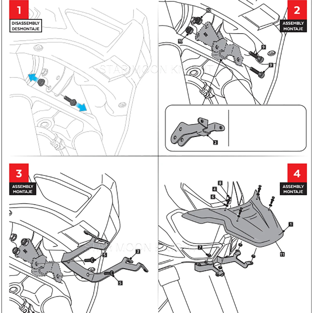 Aizsargājot priekšējo lukturi un priekšējo malu, tas samazina krāsas čipsus un vibrāciju, kas var rasties uz nelīdzeniem ceļiem vai akmeņainām takām. Matēta melna ABS apdare ar oglekļa šķiedras izskatu papildina motocikla stilu, padarot jūsu Africa Twin izskatīgu gatavu jebkurai ekspedīcijai.