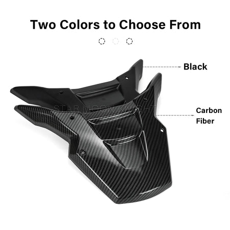 Aizsargājiet savu Honda CRF1100L Africa Twin (2020–2022) ar augšējo priekšējo mudu un priekšējo pīķa pagarinātāju, ūdensnecaurlaidīgu vāku, kas paredzēts, lai novirzītu akmeņus, dubļus un gružus prom no jūsu priekšējā luktura un priekšējās daļas. Izgatavots no triecienizturīga ABS plastmasas ar oglekļa tērauda kronšteinu, šis pīķis piešķir izturīgu, piedzīvojumu gatavu izskatu, vienlaikus uzlabojot priekšējās aizsardzības līmeni sarežģītās reljefos. Dizains nevainojami integrējas ar Africa Twin līnijām, un uzstādīšana ir vienkārša, neprasot urbšanu vai rāmja modifikāciju. Piezīme: Šī daļa ir saderīga tikai ar standarta izdevumu un nav paredzēta Adventure Sports versijai.