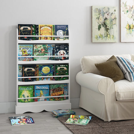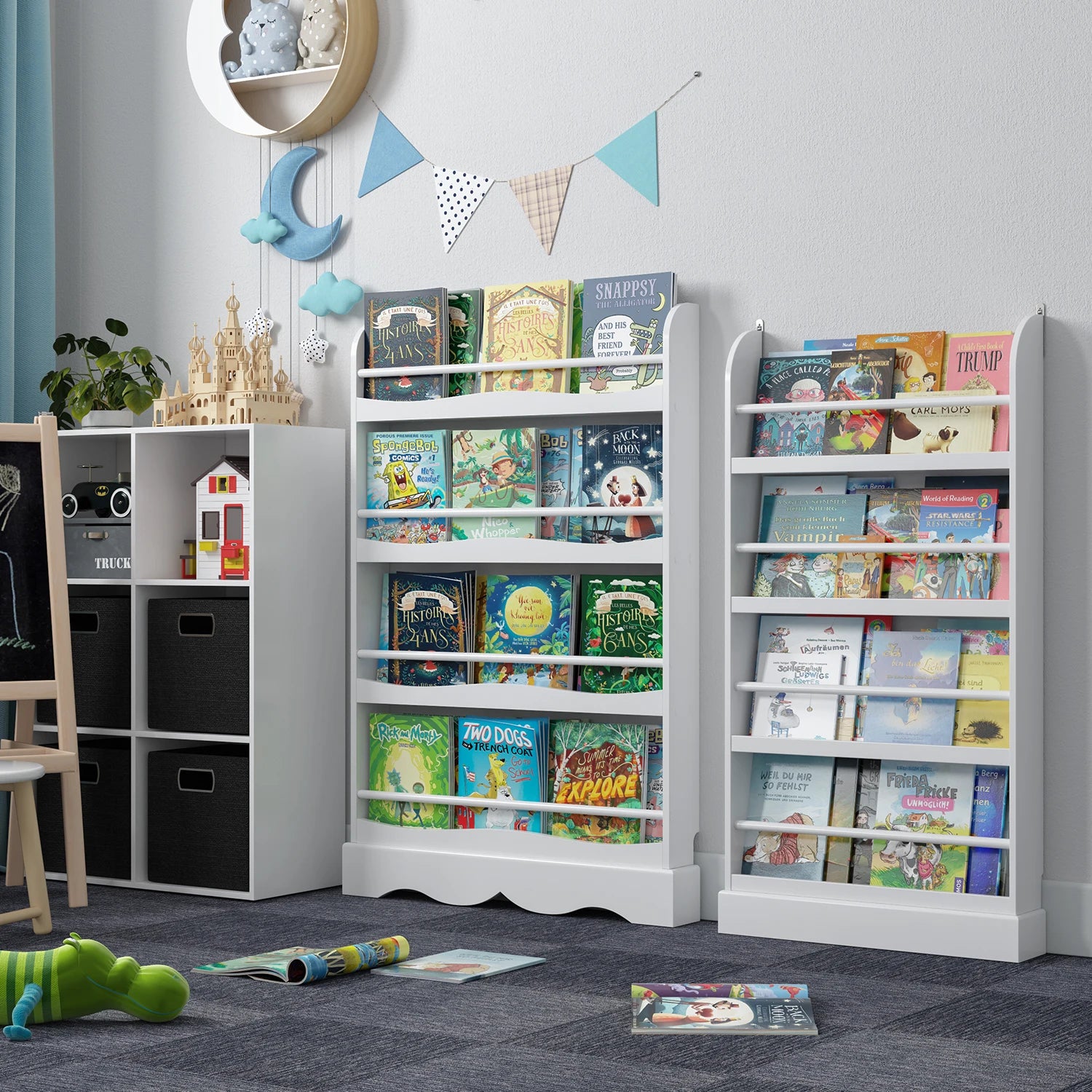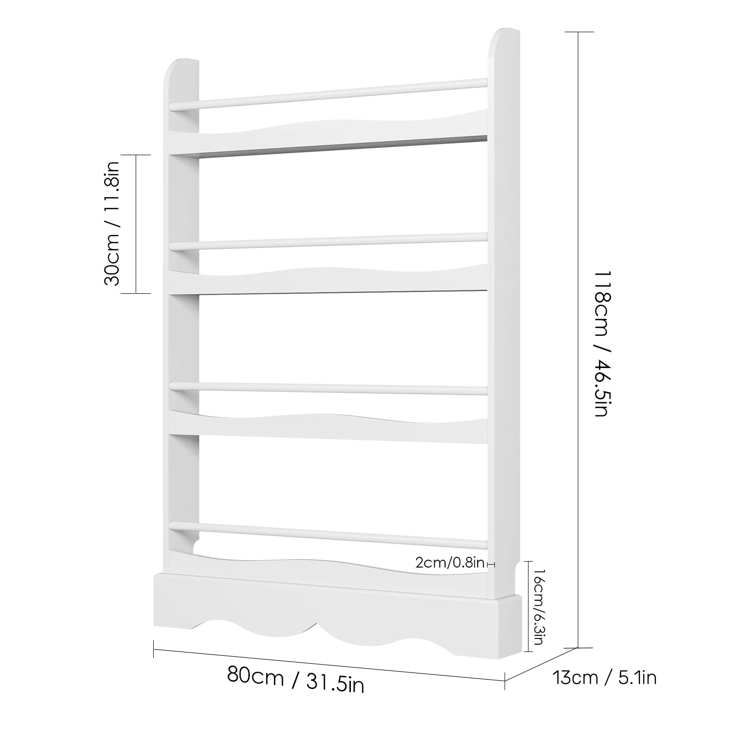 Bērnu grāmatu plaukts 4 līmeņu brīvi stāvošas plaukti ir gatavs lietošanai, brīvi stāvošs balts grāmatu plaukts, kas īpaši izstrādāts bērniem. Ar četriem plašiem uzglabāšanas nodalījumiem tas tur grāmatas, rotaļlietas, lelles, žurnālus un vēl daudz ko citu — palīdzot bērniem mācīties organizēt savas mantas un attīstīt lieliskas ieradumus jau agrā vecumā.