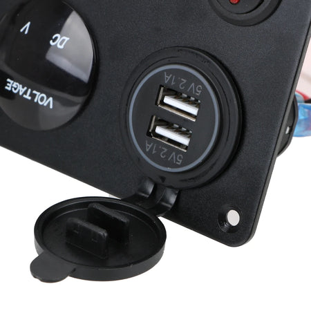 12V ūdensizturīgs 5 gang slēdžu panelis ar digitālo voltmetru, divi USB laivas automašīnai