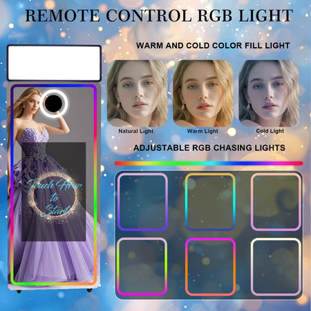 Elevate any event with the Magic Mirror Photo Booth 65In with 43In Touch Screen Case. This striking setup combines a 65-inch reflective mirror with a bold 43-inch touch-screen case, delivering an interactive, standout photo experience for guests at weddings, parties, festivals, events, and rental fleets. Built to handle high-traffic environments, its sturdy metal and glass construction ensures durability while maintaining a sleek, modern look that complements any venue.