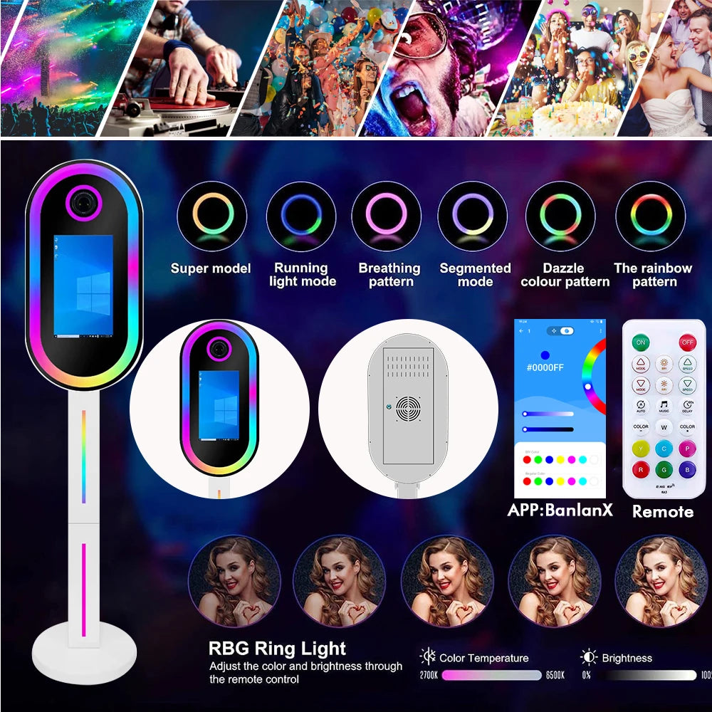 Mirror Photo Booth LCD Touch Screen Ring Light Flight Case by WideMeet apvieno elegantu, interaktīvu foto kabīnes pieredzi ar profesionālu apgaismojumu un izturīgu pārnēsājamību. Izstrādāts ballītēm, kāzām, festivāliem, nomai un pasākumiem, šis viss vienā komplekts nodrošina augstas kvalitātes selfies, aizraujošus viesu mirkļus un ātru uzstādīšanu—no iekštelpu vietām līdz āra svinībām. Eleganta spogulis, atsaucīgs LCD skārienekrāns un integrēta gredzena gaisma rada glaimojošu apgaismojumu un vieglu lietotāja mijiedarbību, kamēr izturīgais lidojuma gadījums padara transportēšanu un uzstādīšanu par vieglu uzdevumu.