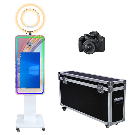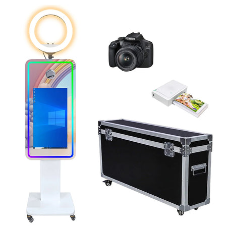 Iepazīstieties ar Magic Mirror Photo Booth 21.5in LCD Touch Screen Portable no WideMeet — šī izcili izskatīgā, patstāvīgā foto kabīne, kas paceļ jebkuru pasākumu. Šis portatīvais komplekts apvieno elegantu metāla un stikla rāmi ar atsaucīgu 21.5 collu skārienekrānu, ļaujot viesiem uzņemt, rediģēt un dalīties atmiņās sekundēs. To darbina kompakts Intel i5 4200U mini PC, 8GB RAM un 256GB krātuve, nodrošinot vienmērīgu veiktspēju foto uzņemšanai, filtriem, veidnēm un tūlītējai dalīšanai. Ar Windows 11 un plašu sprieguma diapazonu (110-240V), tas ir gatavs iekštelpu vai āra vietām un lieliski iederas kāzās, ballītēs, festivālos un nomas iestatījumos.