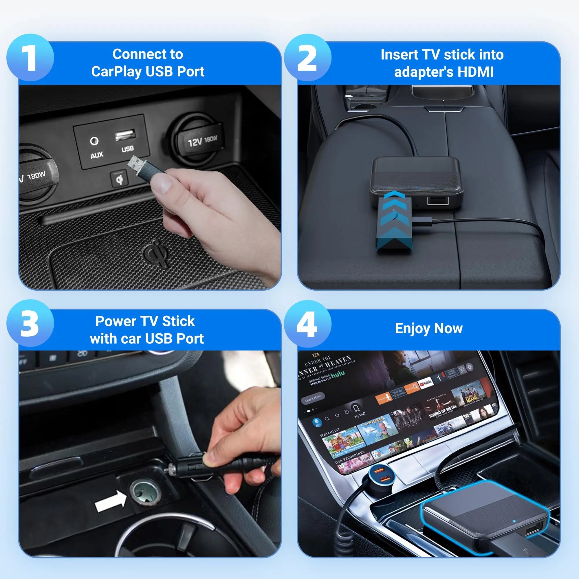 - Iestatīšana ir ātra un vienkārša: pieslēdzieties caur USB un HDMI, nav nepieciešamas papildu lietotnes, un izbaudiet uzticamu izklaidi automašīnā ceļojuma laikā.